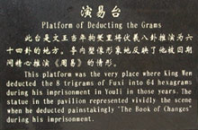 This is the place where Prince Wen deduced the concept of the Later Heaven Ba Gua when he was in prison. It was built as a memorial and a shrine in honour of Prince Wen.